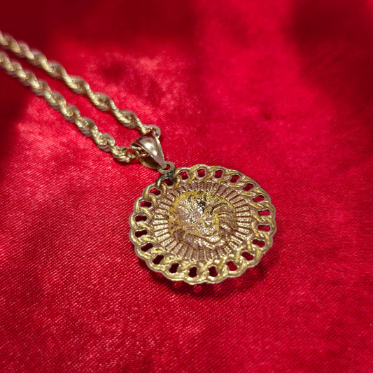 10K Yellow Gold Rope Chain with Small Round Nugget Pendant | Textured Circle Design