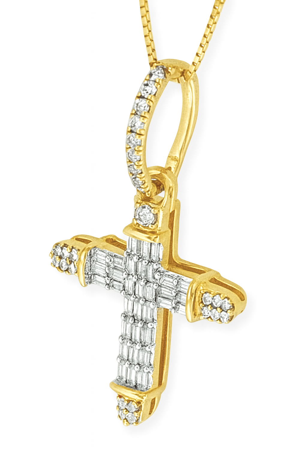 10K Yellow Gold Diamond Cross Pendant Necklace Baguette & Round Diamonds 0.35 CTW