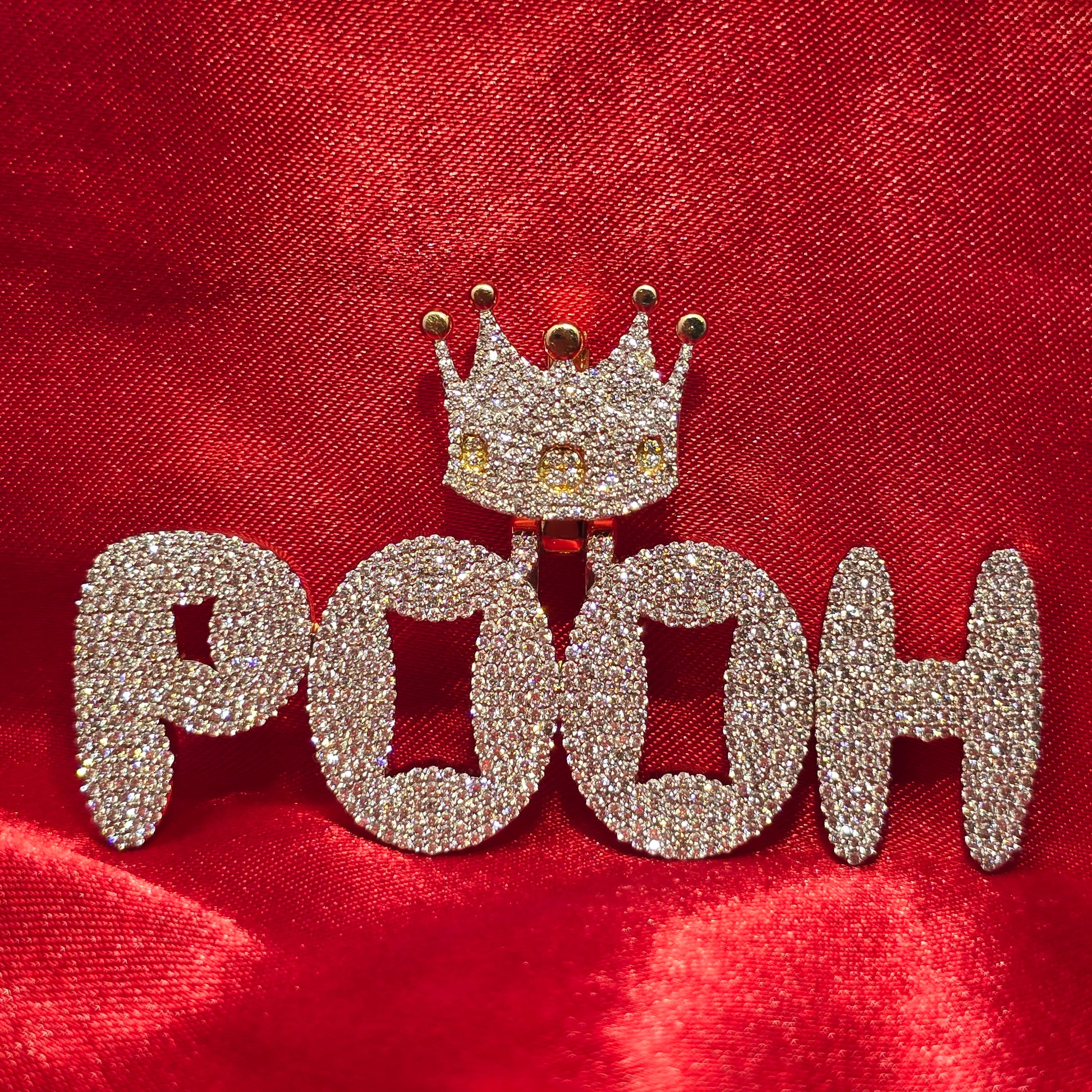Show off your name in ultimate luxury with our Custom Crown Name Pendant, handcrafted in 10K Gold and encrusted with 100% Natural VS Clarity Diamonds for unmatched brilliance. This fully iced-out piece features a bold block-style font with a regal diamond crown on top, making it the perfect statement for hip hop, streetwear, and luxury jewelry lovers.