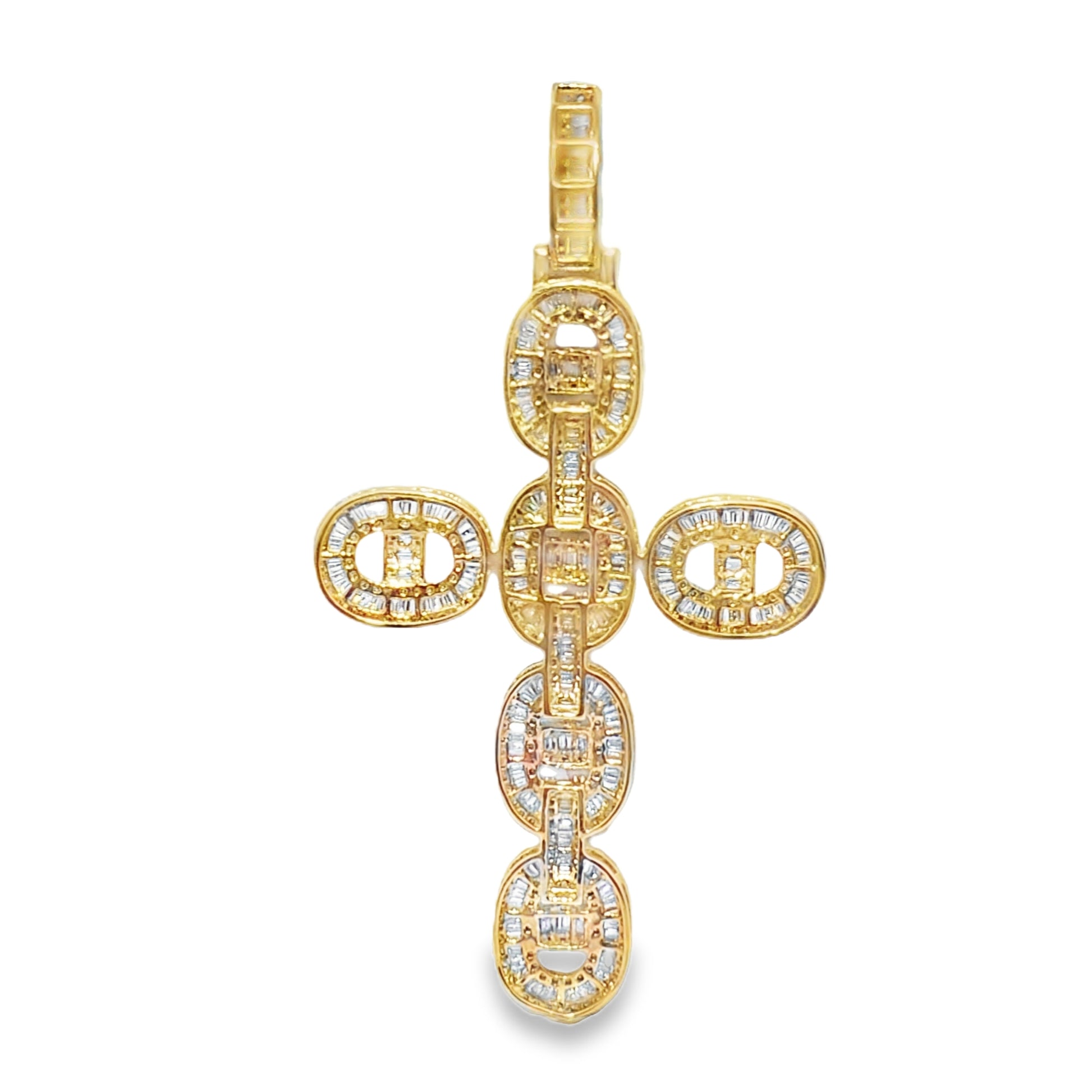 Make a bold expression of faith and luxury with the 10K Yellow Gold Diamond Cross Pendant (5.0 ctw) from Jewelry Palace. This breathtaking design features a series of oval-shaped diamond clusters arranged in a linked cross pattern, radiating unmatched brilliance from every angle.