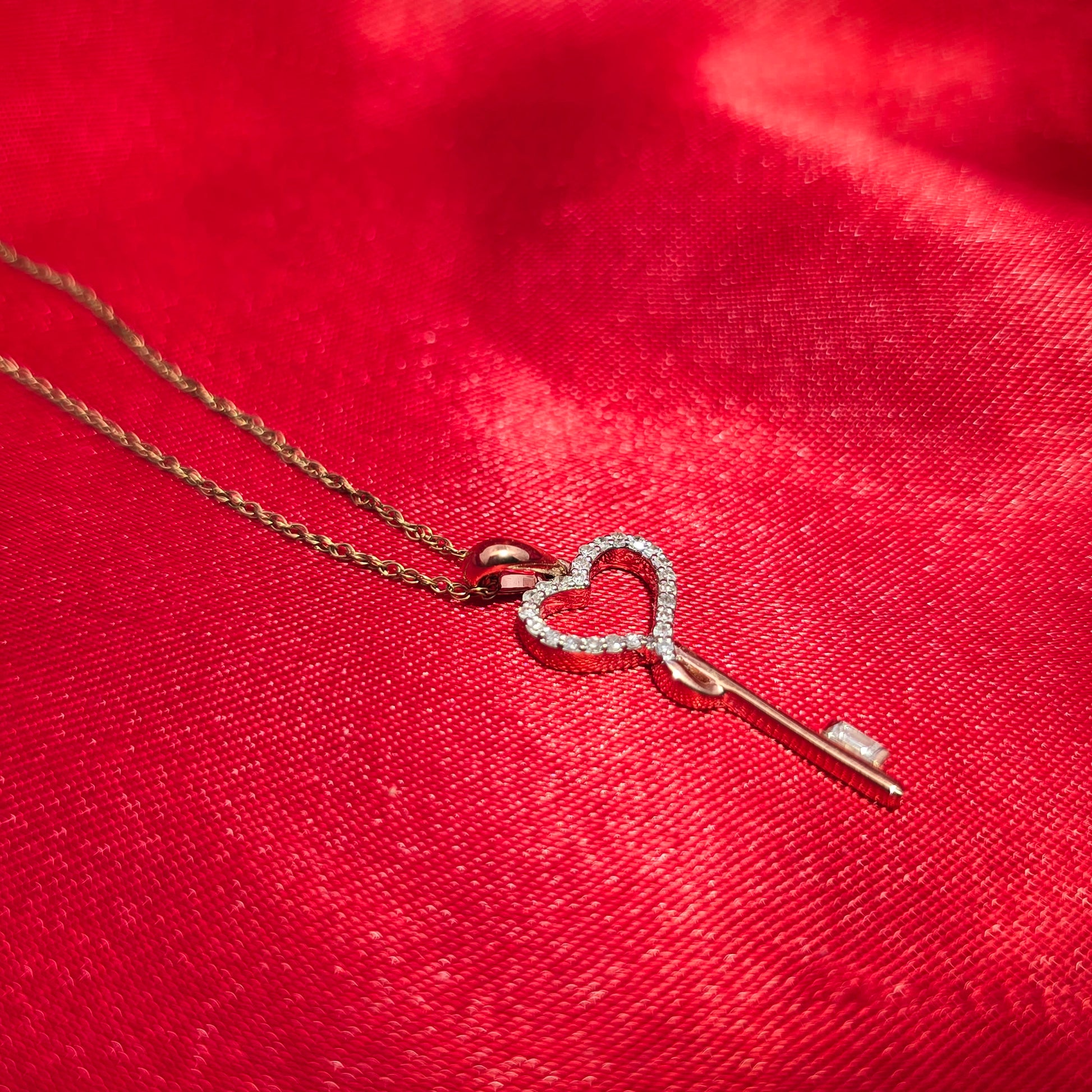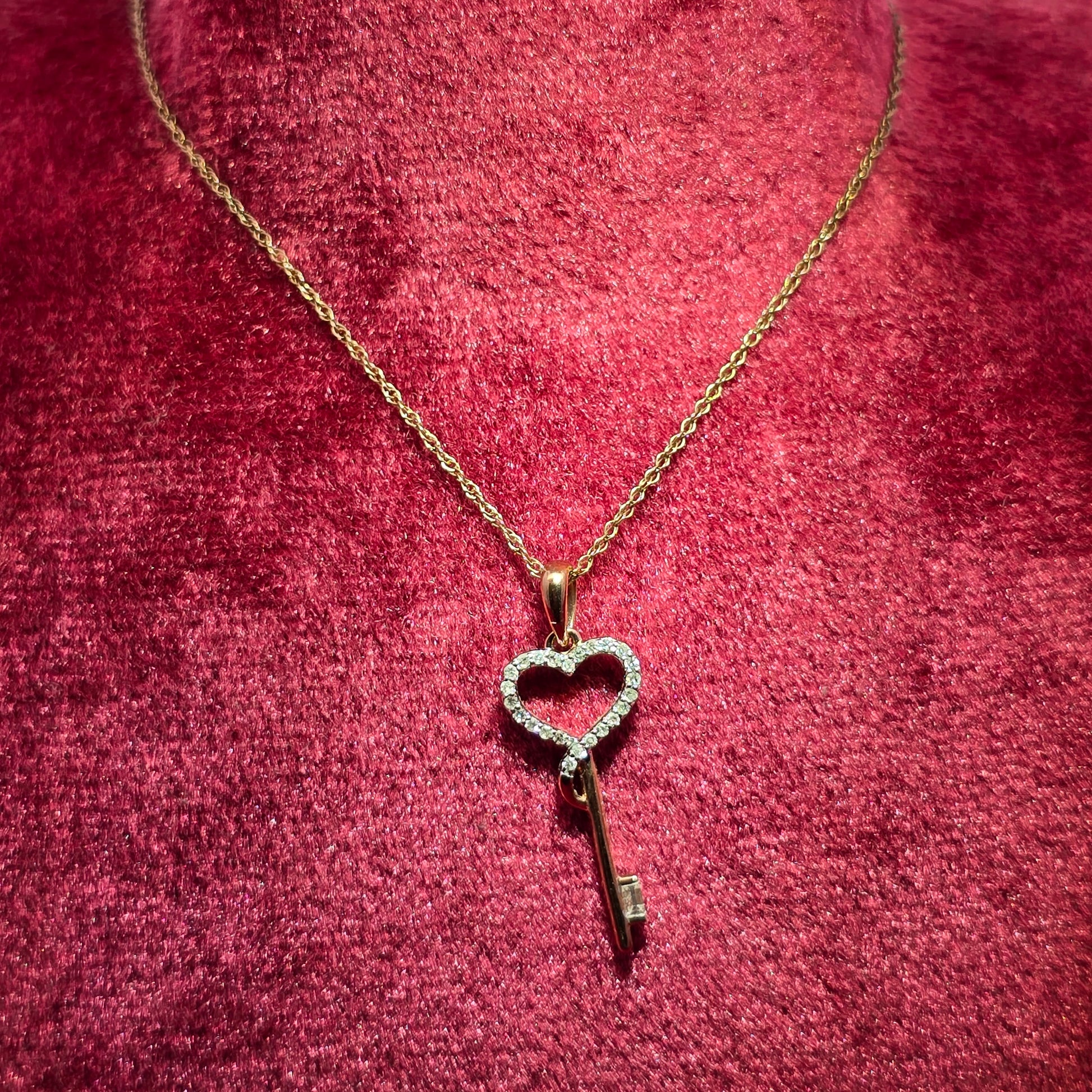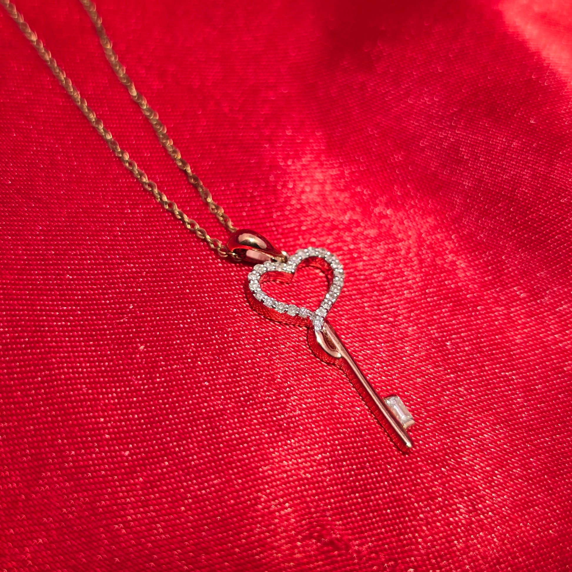 Symbolic, sparkling, and romantic—this 10K Rose Gold Diamond Key Pendant Necklace is the perfect gift of love and meaning. Featuring a beautifully crafted heart-shaped key design, accented with 0.10 carat total weight of natural diamonds, it’s a standout piece for the modern woman.