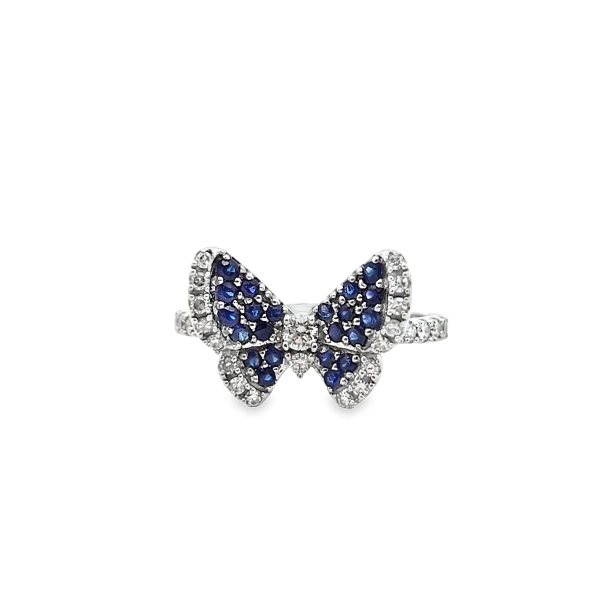 Butterfly Ring 0.33 ctw Diamond Natural Sapphire 10K White Gold