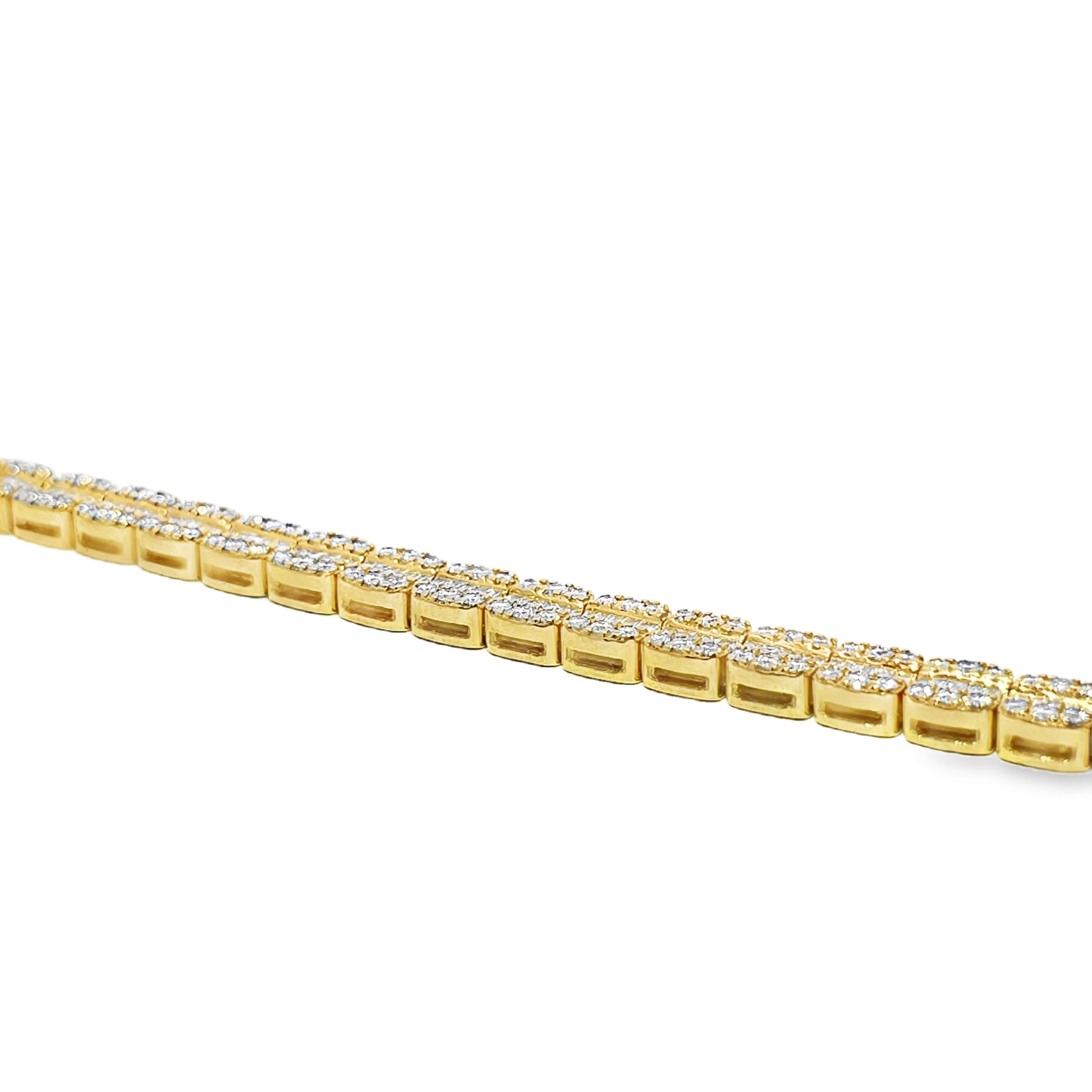 • Crafted in 10K yellow gold for a timeless, elegant look • Features 3.59 carats total weight of sparkling diamond baguettes • Measures 8 inches in length, ideal for comfortable everyday wear • 5mm width offers a balanced, noticeable presence on the wrist • Elegant design perfect for both casual and formal occasions