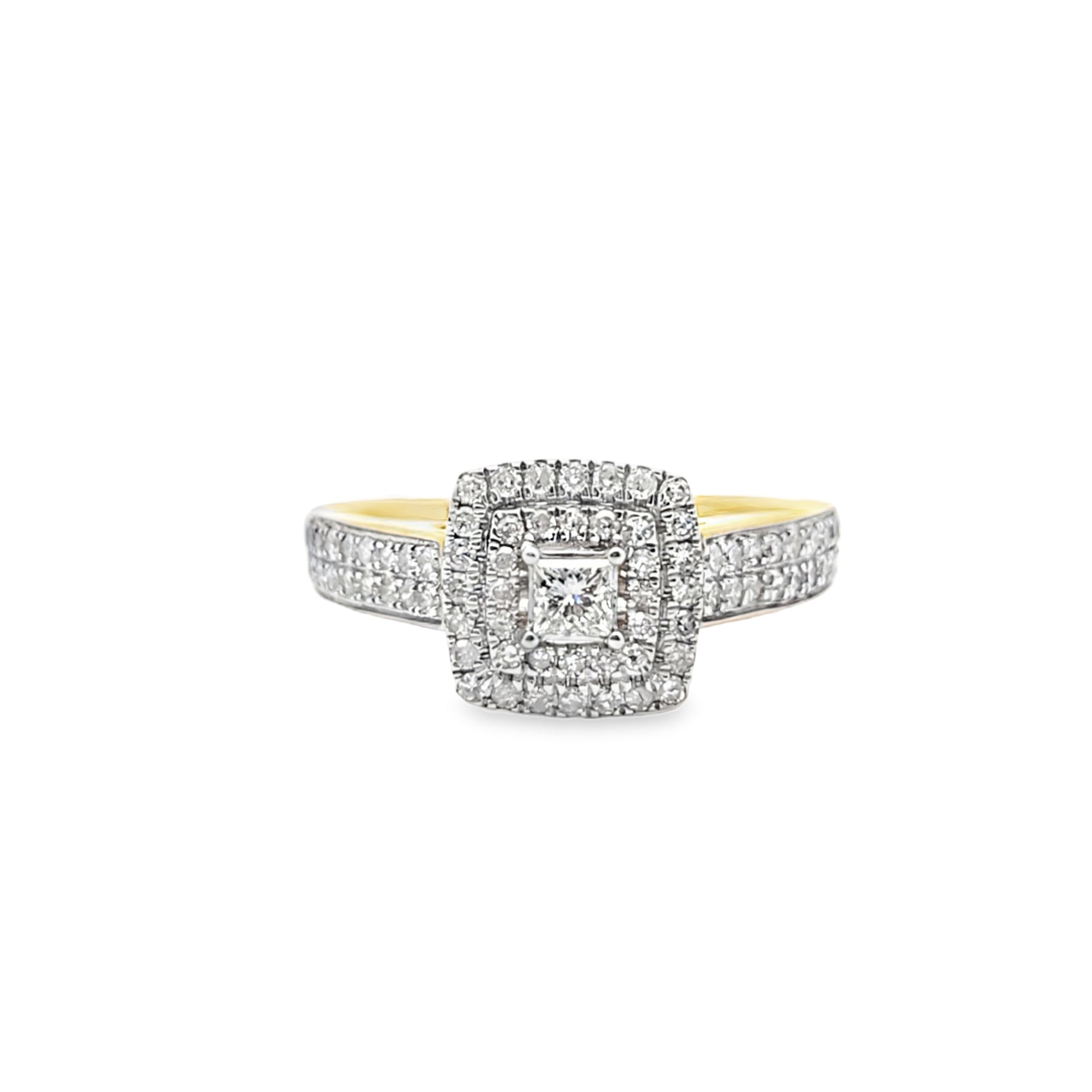 Diamond Engagement Ring with Band 0.84 ctw 10K Yellow Gold