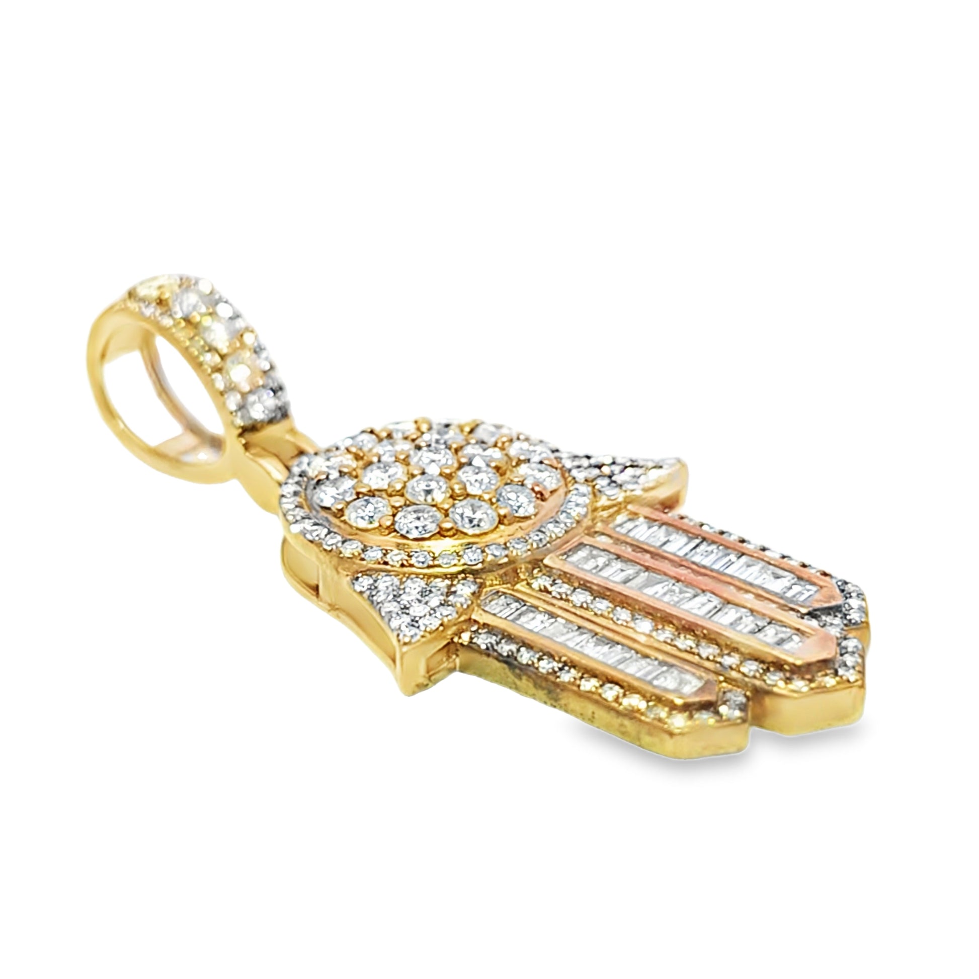 Iced Out Baguette Hamsa Pendant 1.80 ctw Diamond 10K Yellow Gold