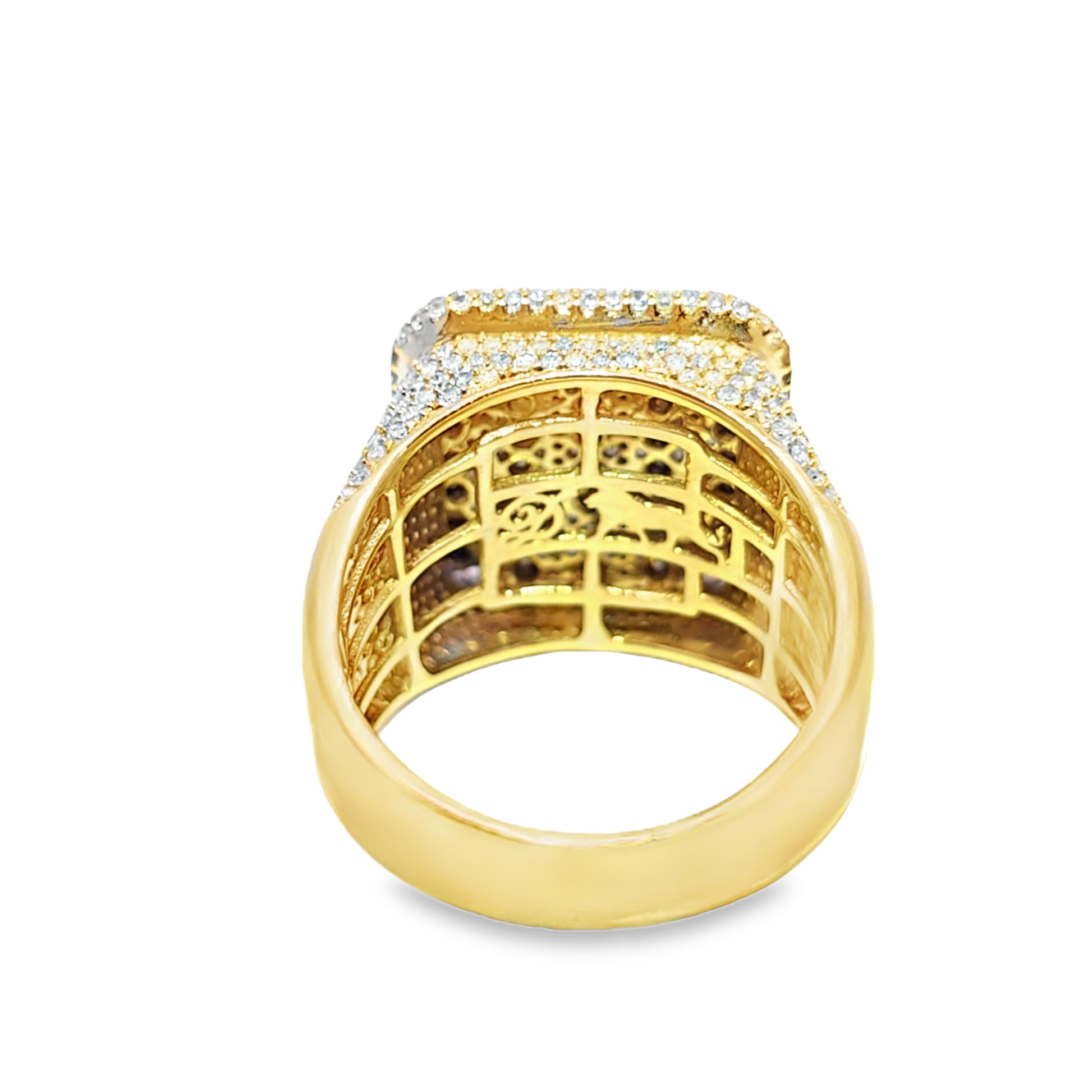 Diamond Puffed Square Ring 2.15 CTW in 10K Yellow Gold – Iced Out Statement
