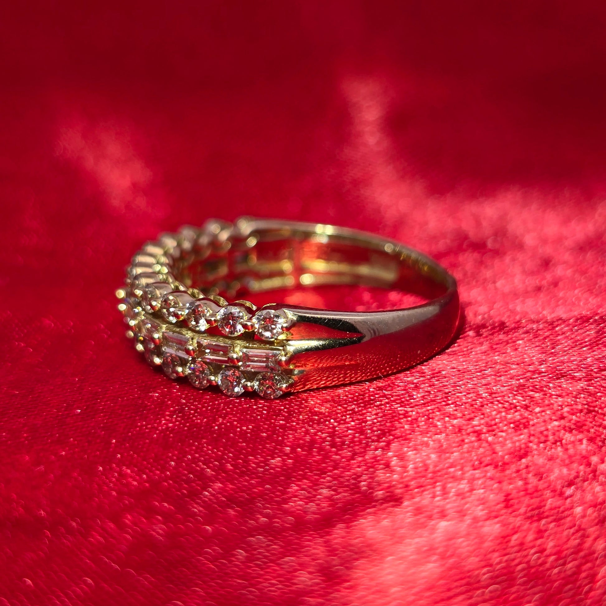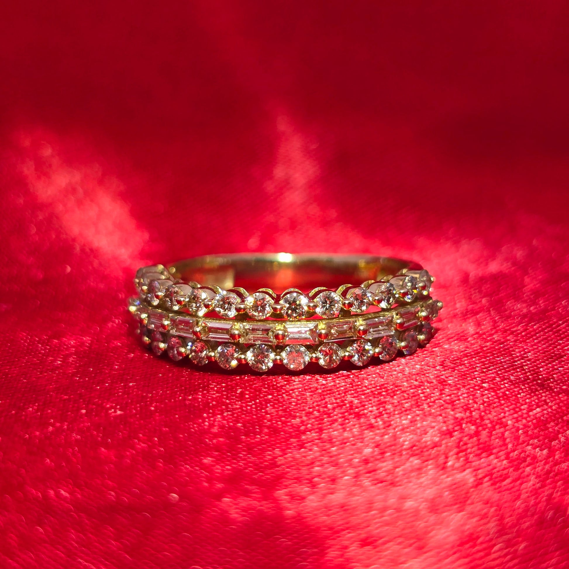 Celebrate timeless elegance with the Round and Baguette Wedding Ring 2.00 ctw Diamond 10K Yellow Gold from Jewelry Palace. This stunning piece combines the brilliance of round cuts with the sleek lines of baguette diamonds for a sophisticated finish.