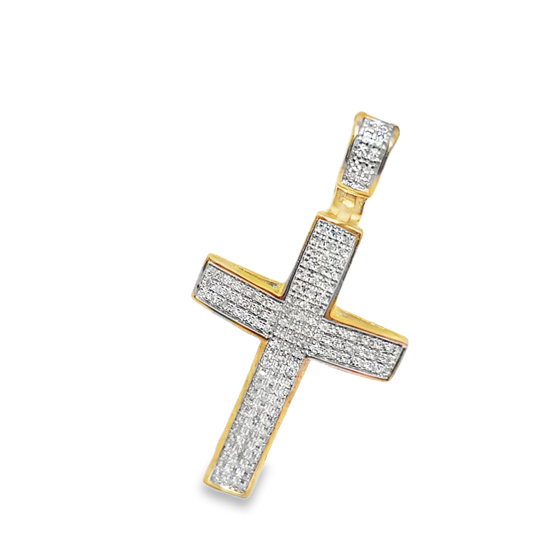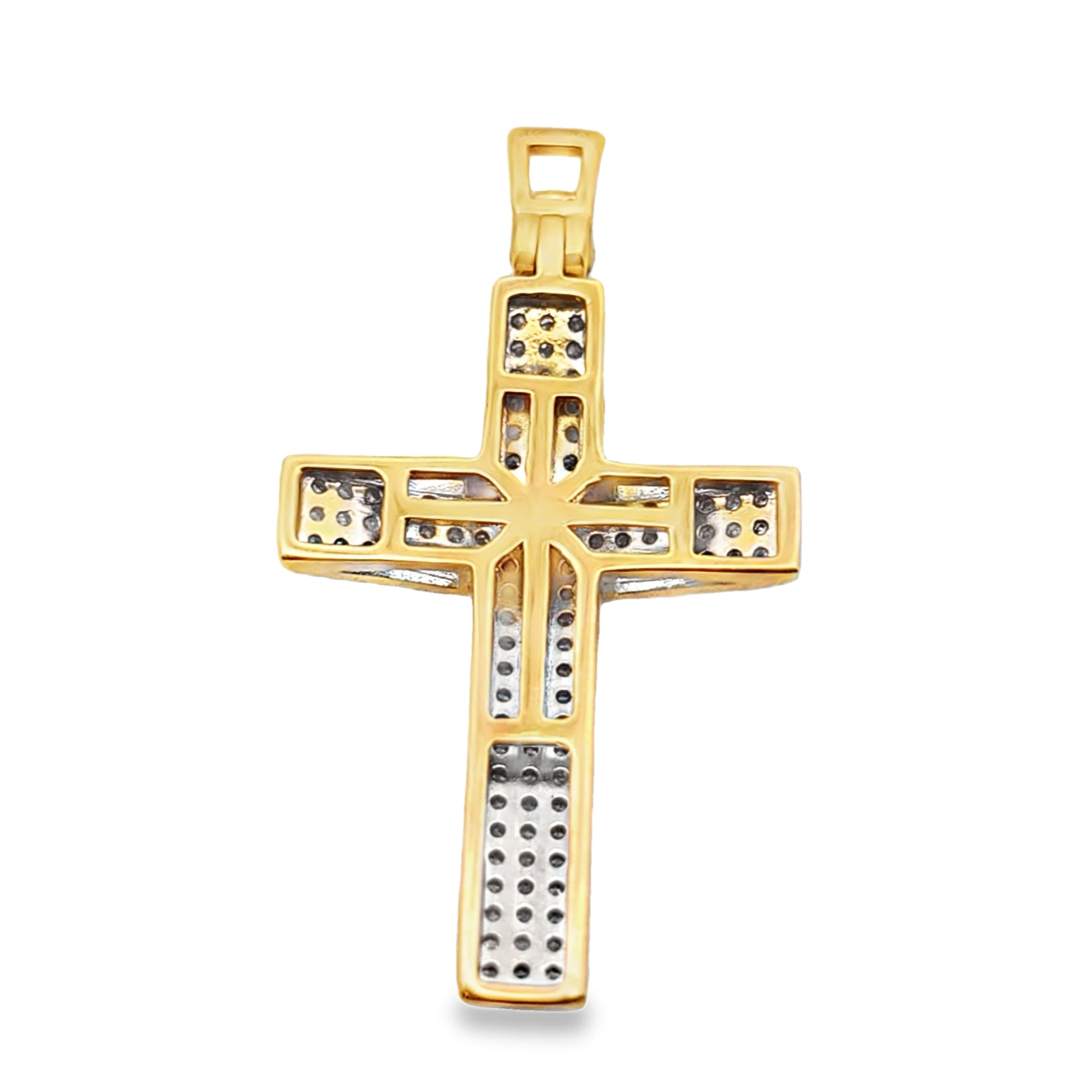 10K Yellow Gold Round Cut Pavé Set Diamond Cross Pendant 0.25 ctw