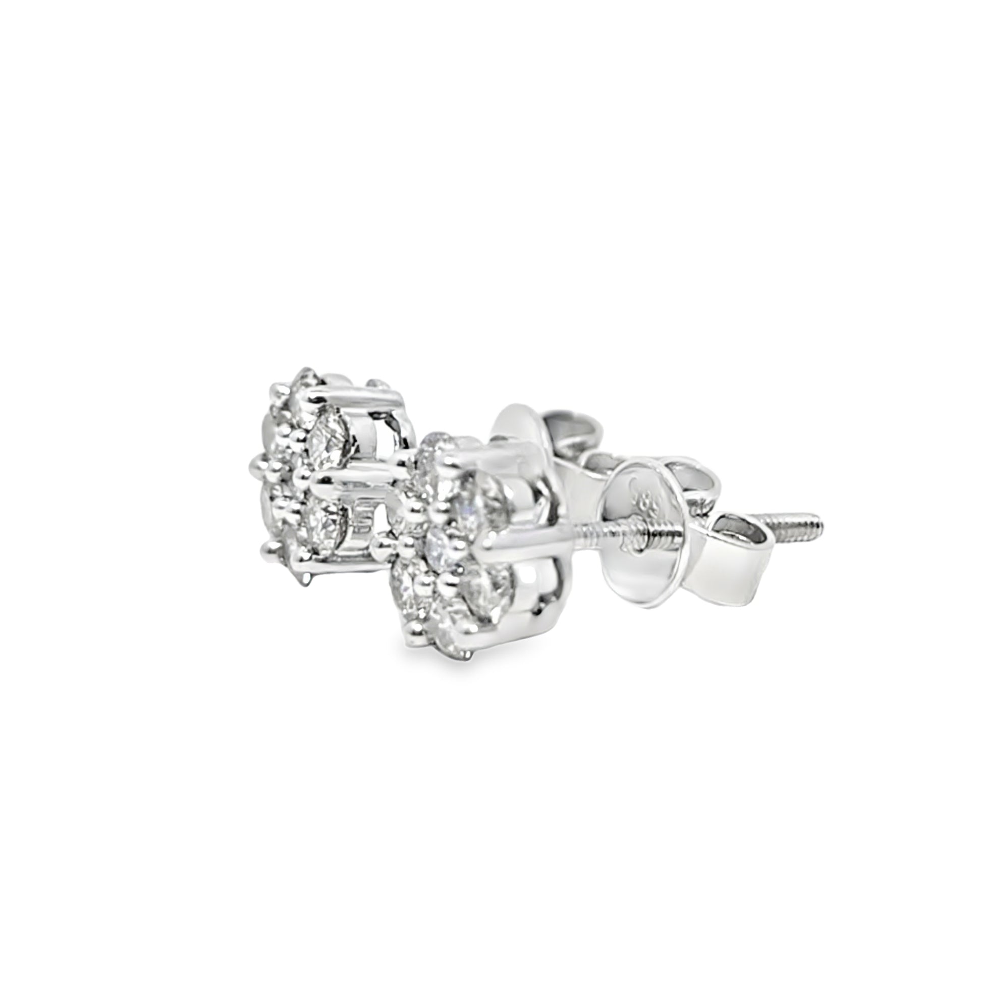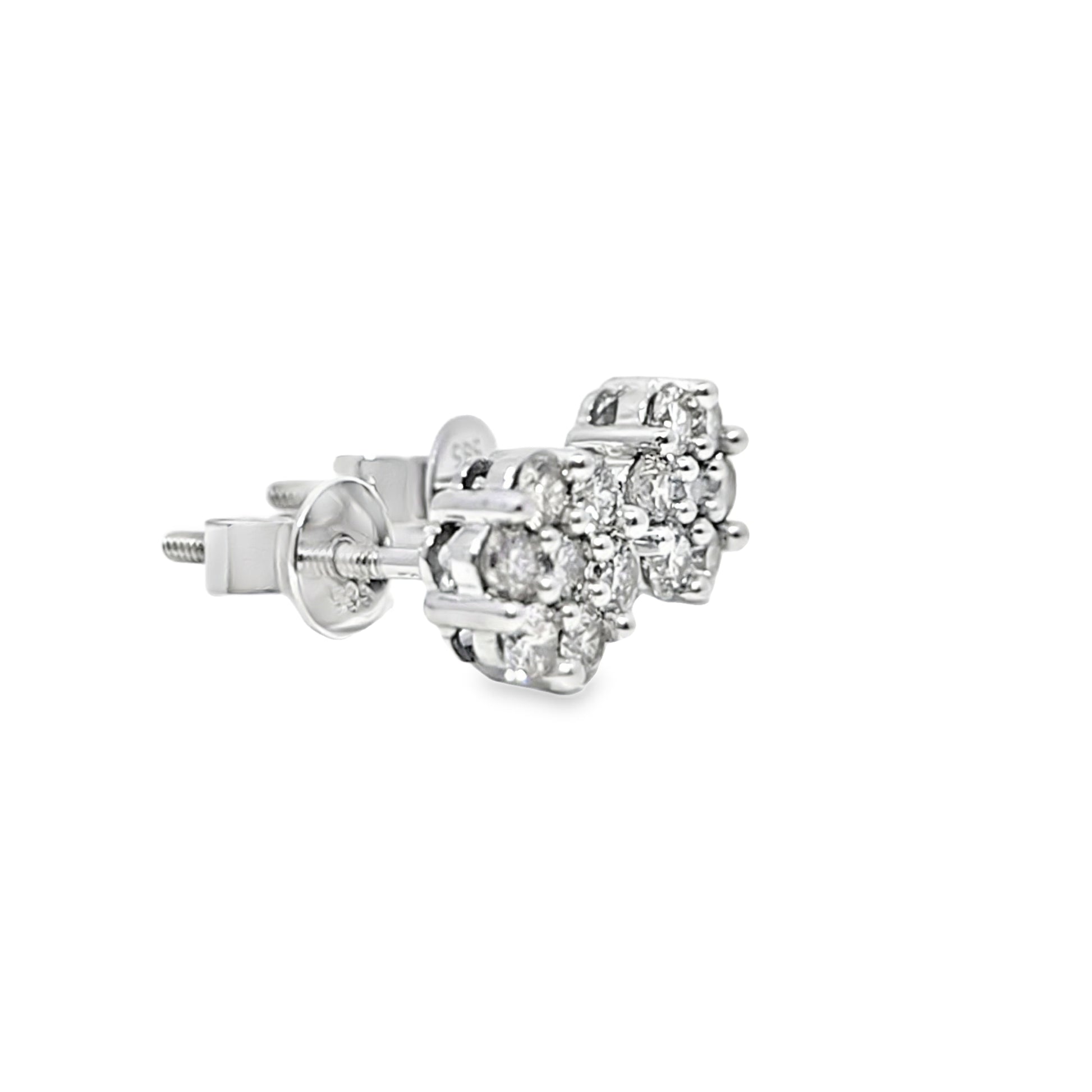14K White Gold 0.80 ctw Diamond Flower Earrings | Cluster Studs | Jewelry Palace