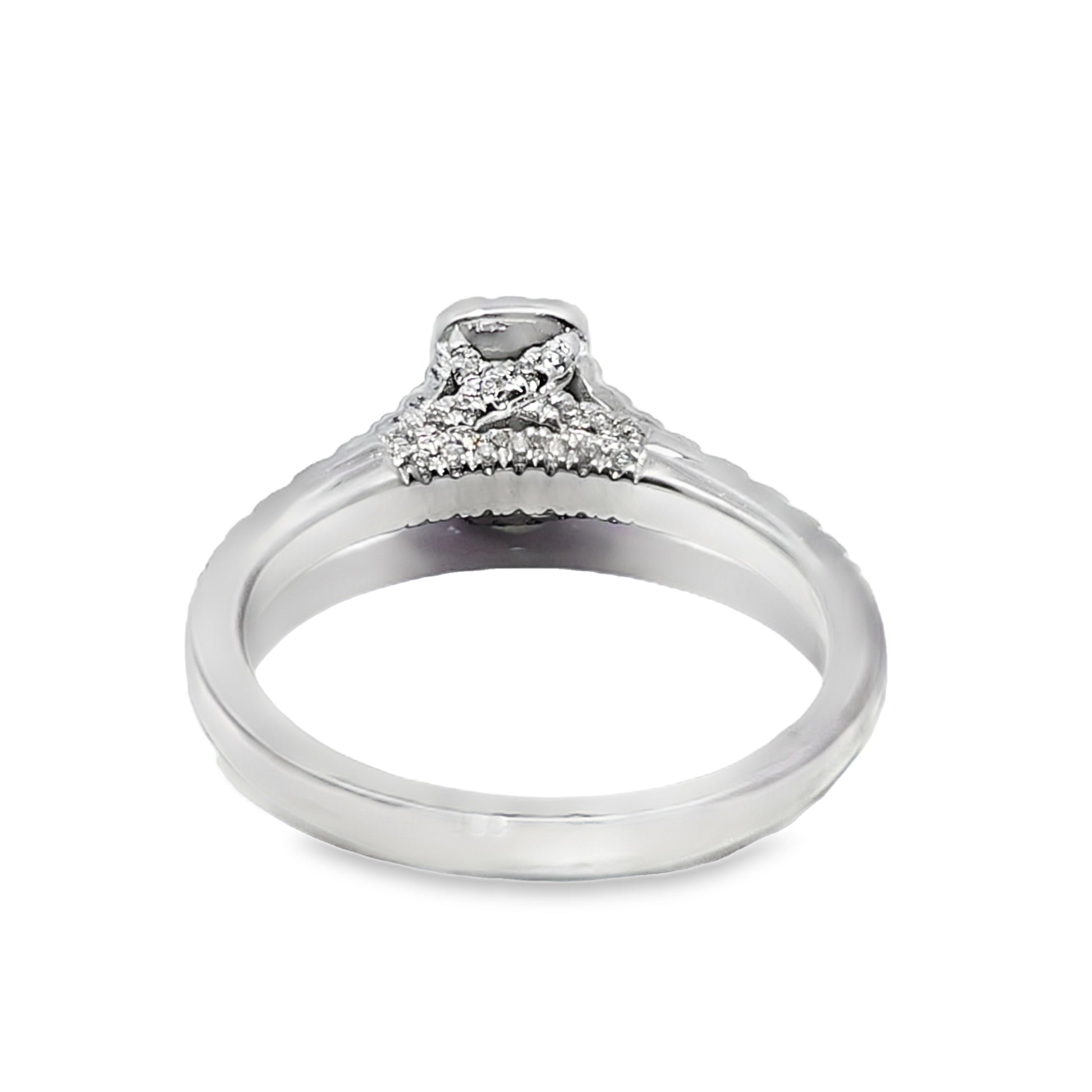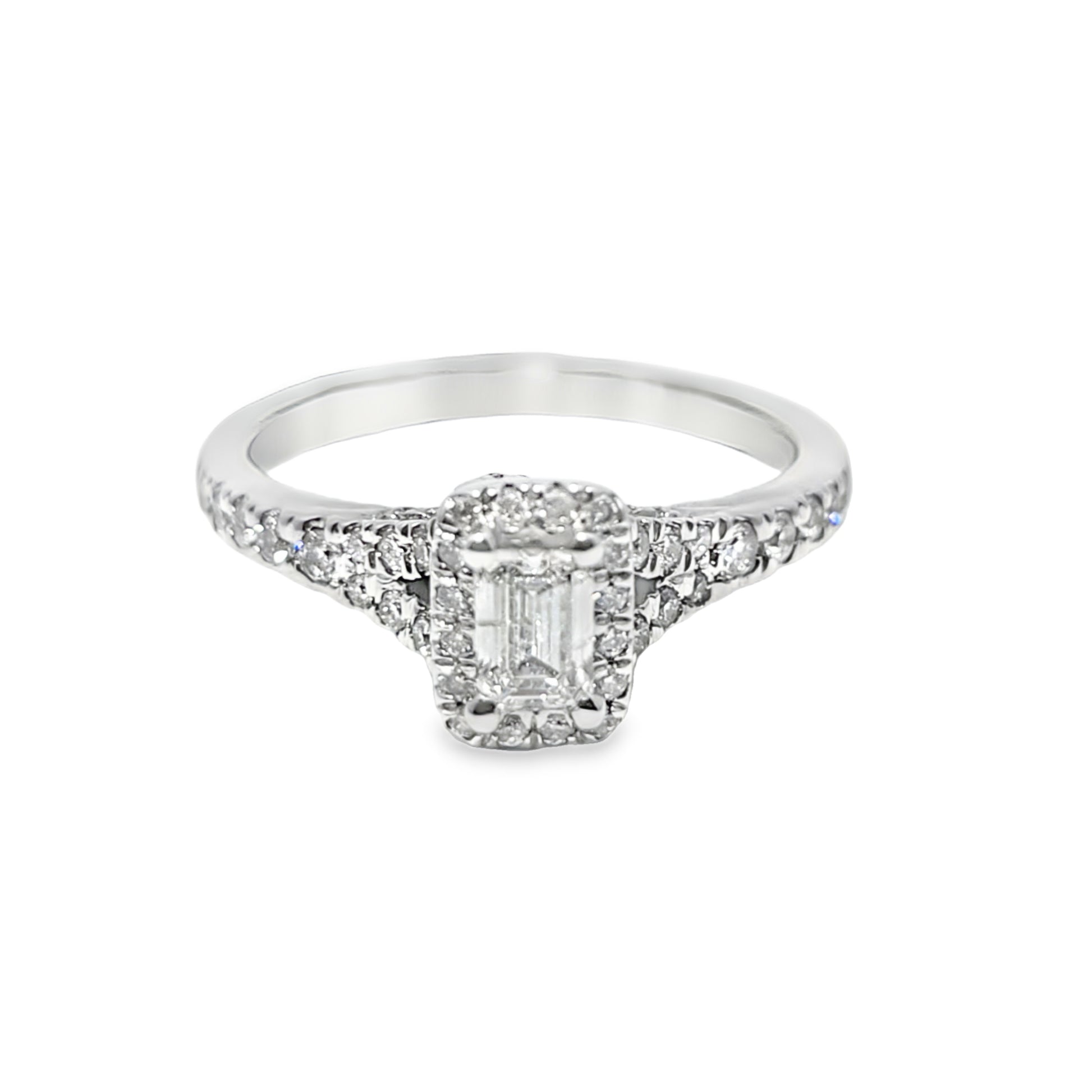 14k White Gold Diamond Engagement Ring with Emerald Cut Center Stone 0.75 ctw Overall