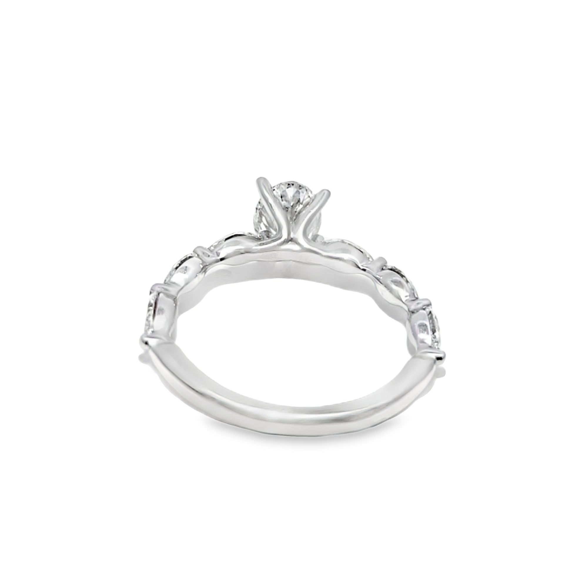 This stunning ring features a sparkling oval-cut center diamond, elegantly complemented by marquise-shaped side stones that add a floral-inspired symmetry and extra fire. The sleek 14K white gold band enhances the brilliance of every diamond, creating a luminous, romantic glow from every angle.