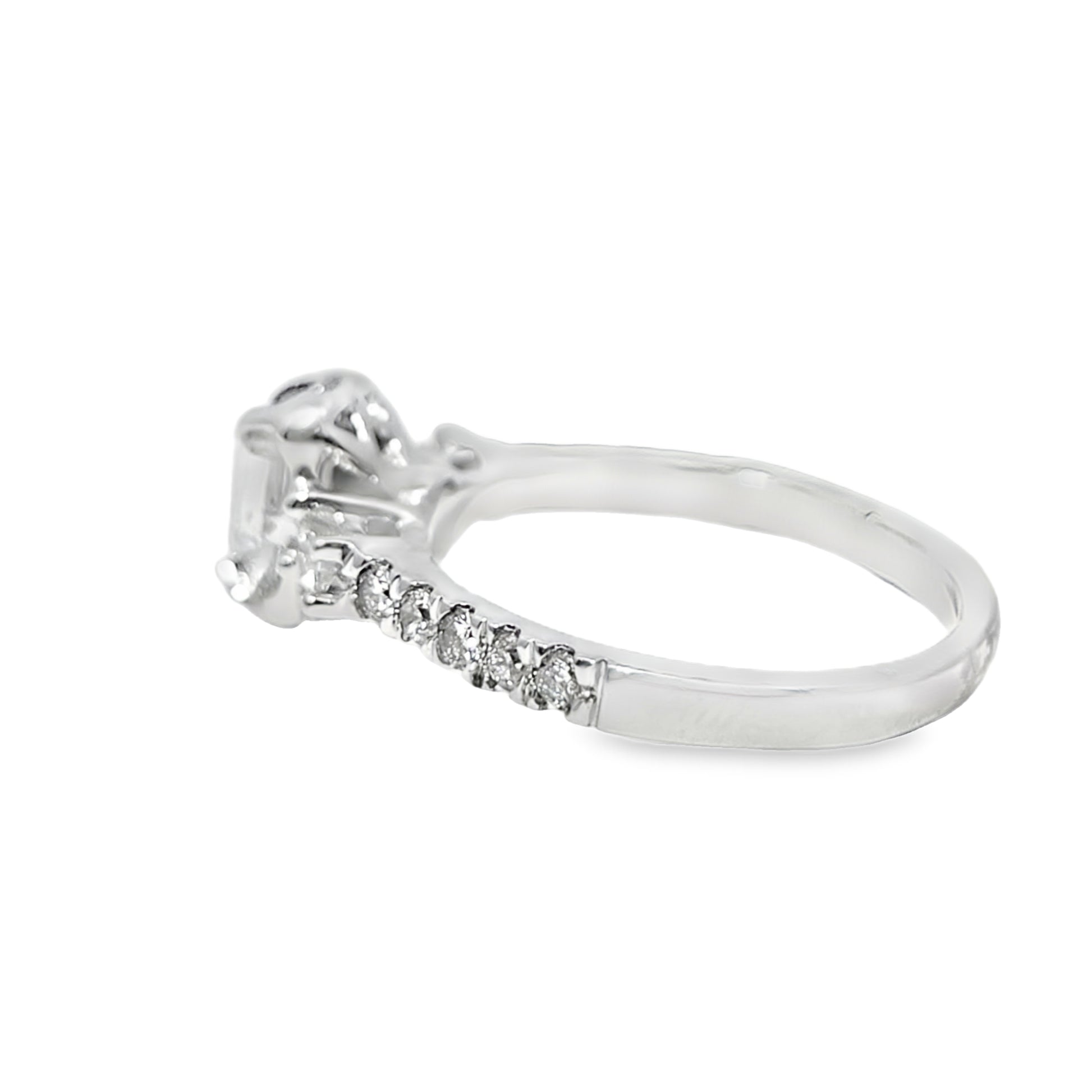14k White Gold Diamond Ring with Emerald Cut Solitaire 1.00 ctw Overall