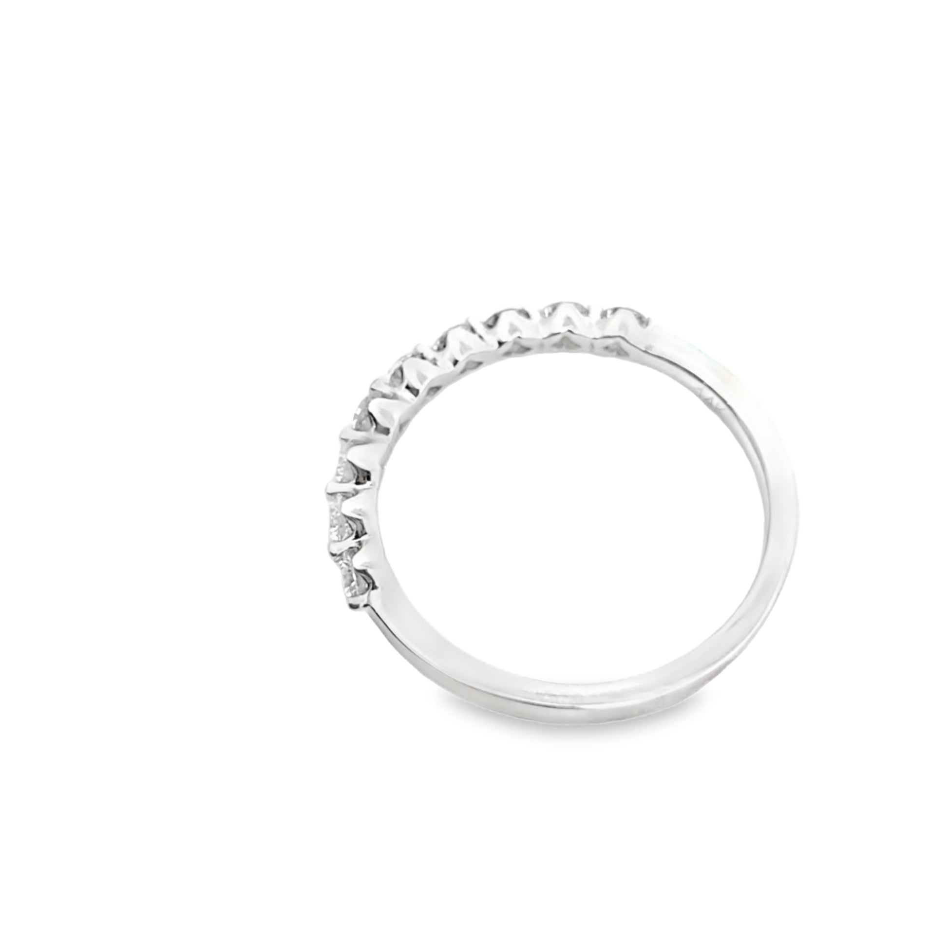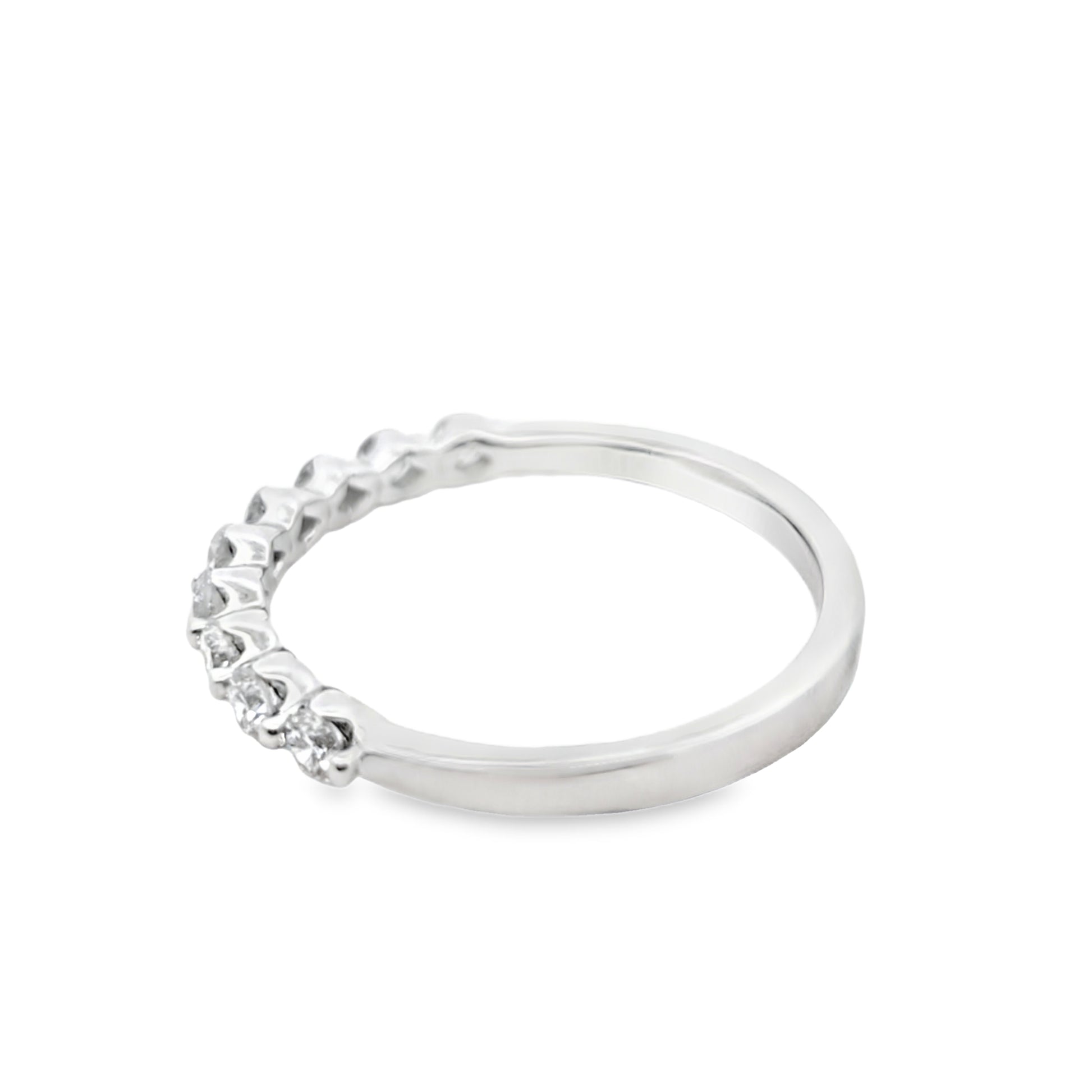 0.50 ctw of Diamonds: Round brilliant-cut stones set in a half-eternity design for continuous brilliance.