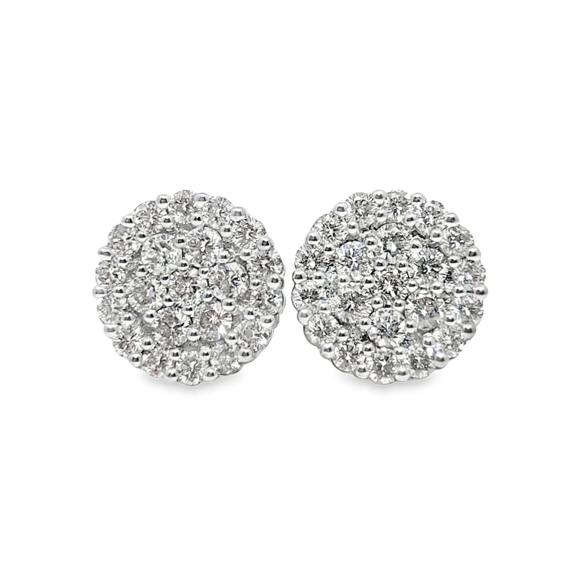 14K Yellow Gold 1.88 ctw Diamond Circle Cluster Earrings | Luxury Studs | Jewelry Palace