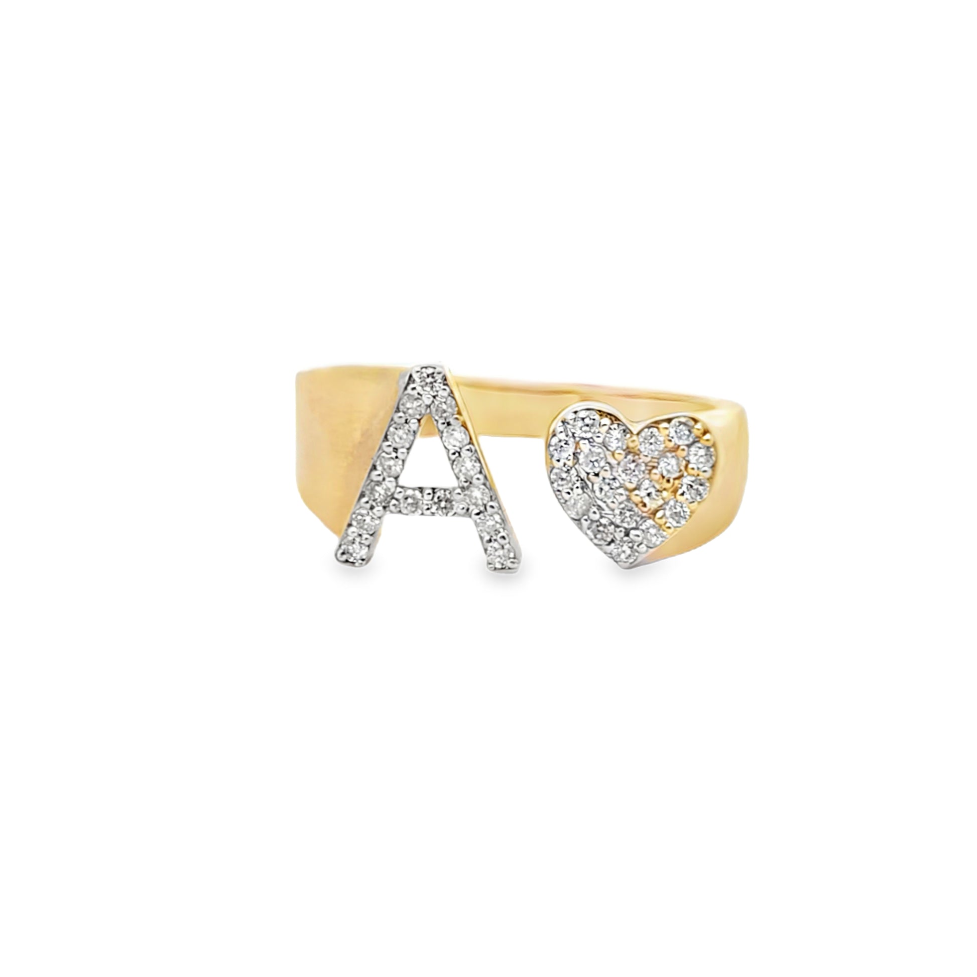 "A" Initial Cuff Ring With Heart 0.30 ctw Diamond 14K Yellow Gold