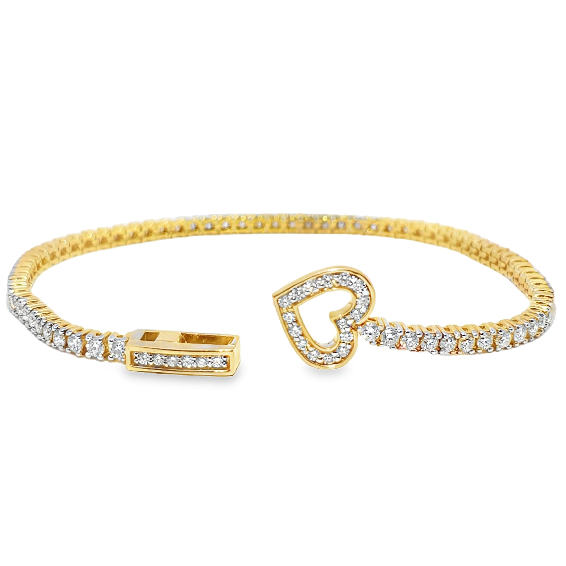 14K Yellow Gold Women's Diamond Tennis Bracelet 3.00ctw with Heart Clasp