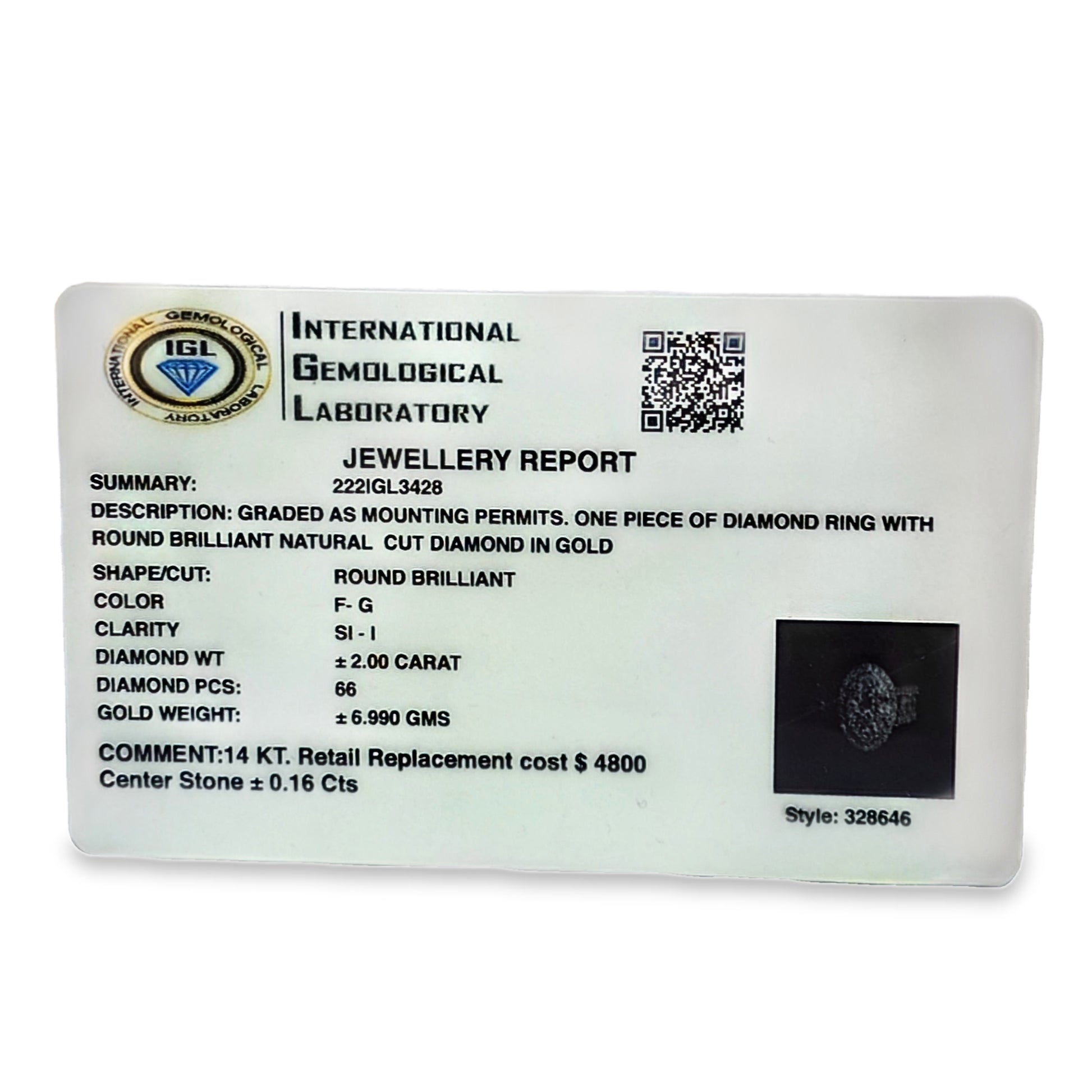 Elevate your elegance with the 14K Yellow Gold Diamond Ring with Round Cut Diamonds (1.99 ctw) from Jewelry Palace. This luxurious piece embodies classic charm and radiant brilliance — the perfect balance of sophistication and sparkle for any occasion.
