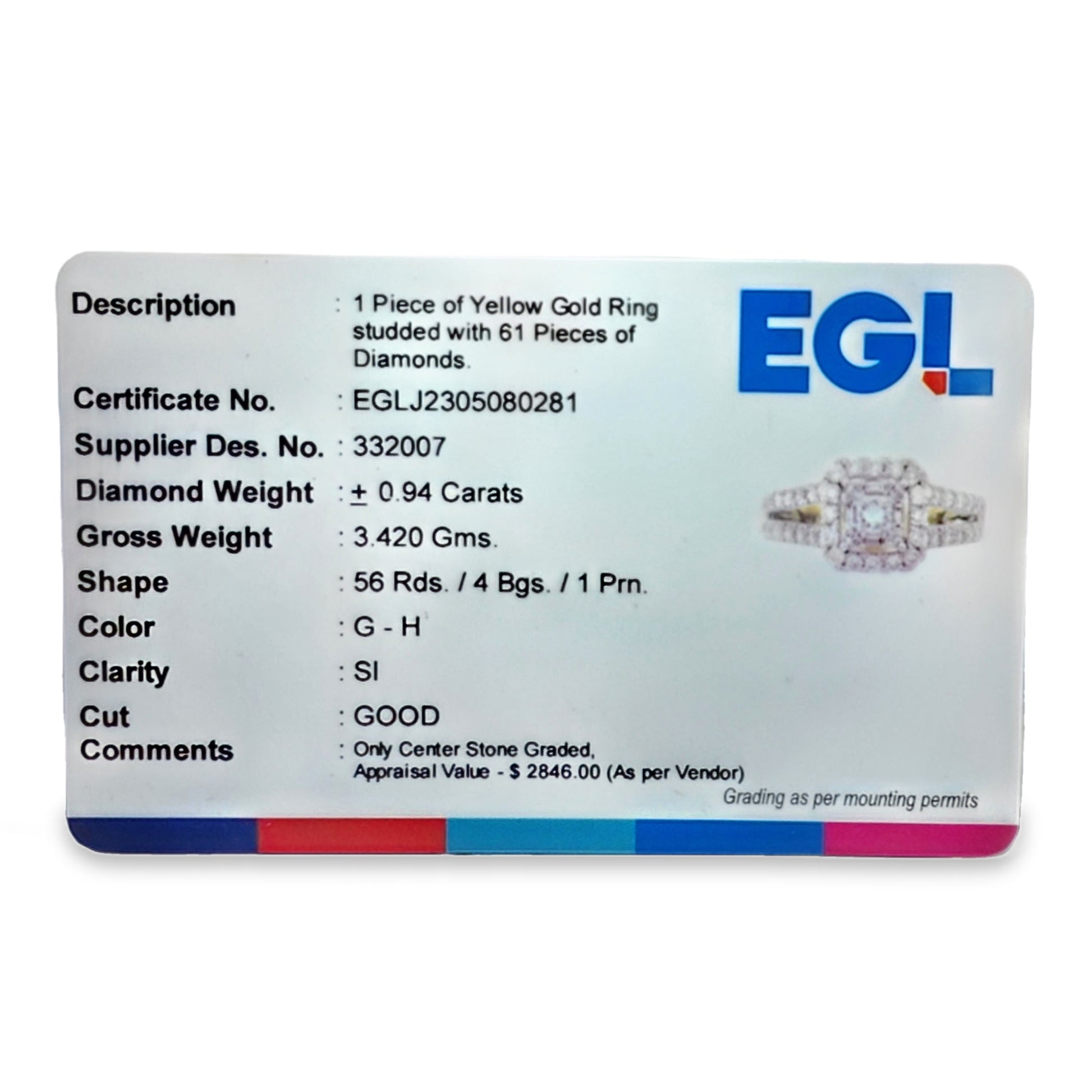 14K Yellow Gold Square Cut Diamond Halo Ring 0.94 ctw | Elegant Engagement & Fashion Jewelry – Jewelry Palace Lithonia GA