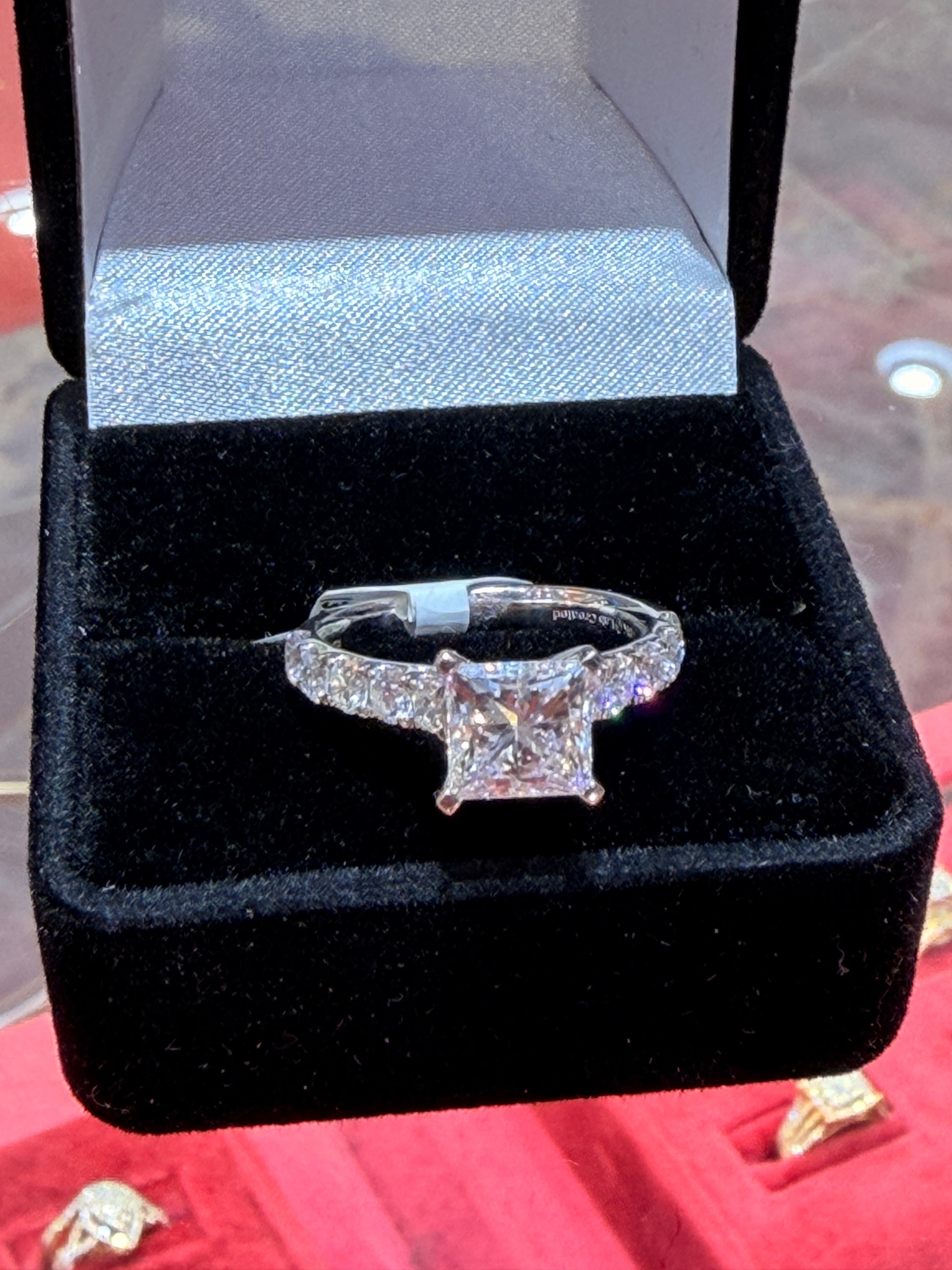 2.01 CT Princess Cut IGI Certified Lab Grown Diamond Engagement Ring – 18K White Gold 3.01 ctw Overall