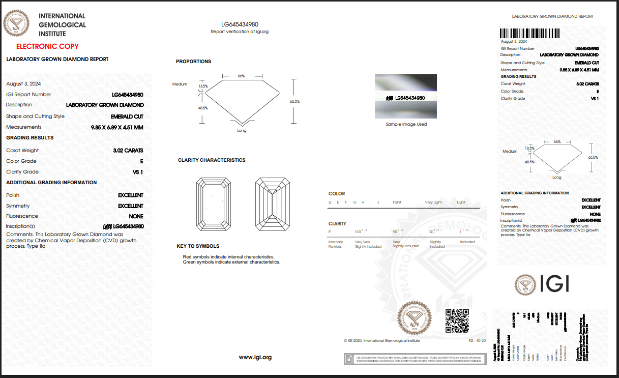 Certification: IGI – International Gemological Institute