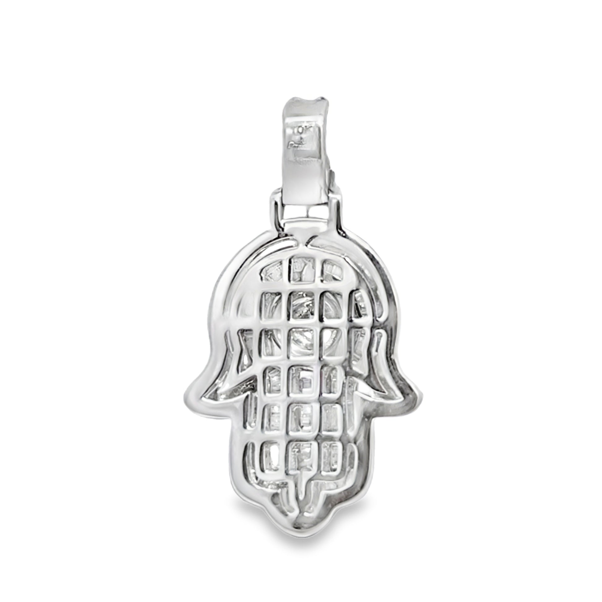 Double Layer Hamsa Hand Pendant 1.20 ctw Diamond 10K White Gold | Spiritual Protection Symbol | Jewelry Palace