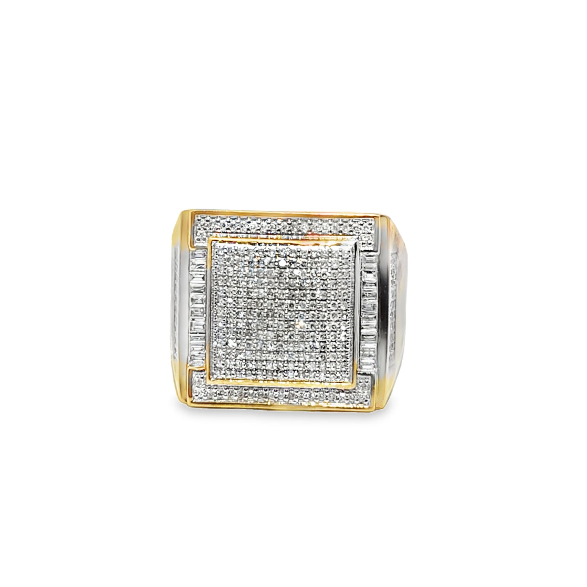 Mens Square Statement Ring 0.79 ctw Diamond 10K Yellow Gold