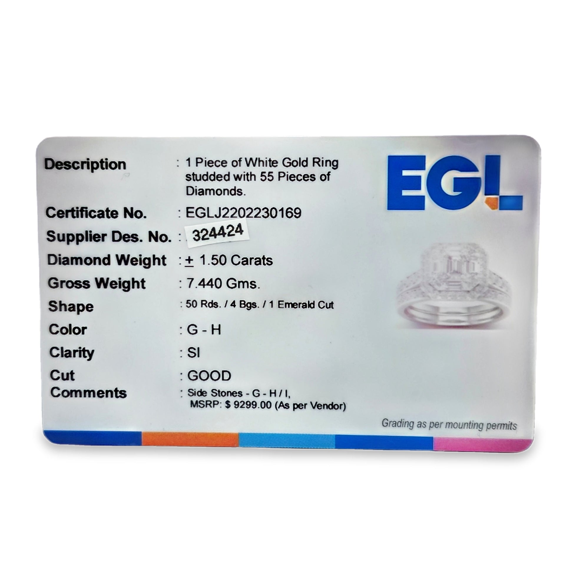 14K White Gold Emerald Cut Diamond Halo Engagement Ring 1.50 ctw | Elegant Bridal Set – Jewelry Palace Lithonia GA