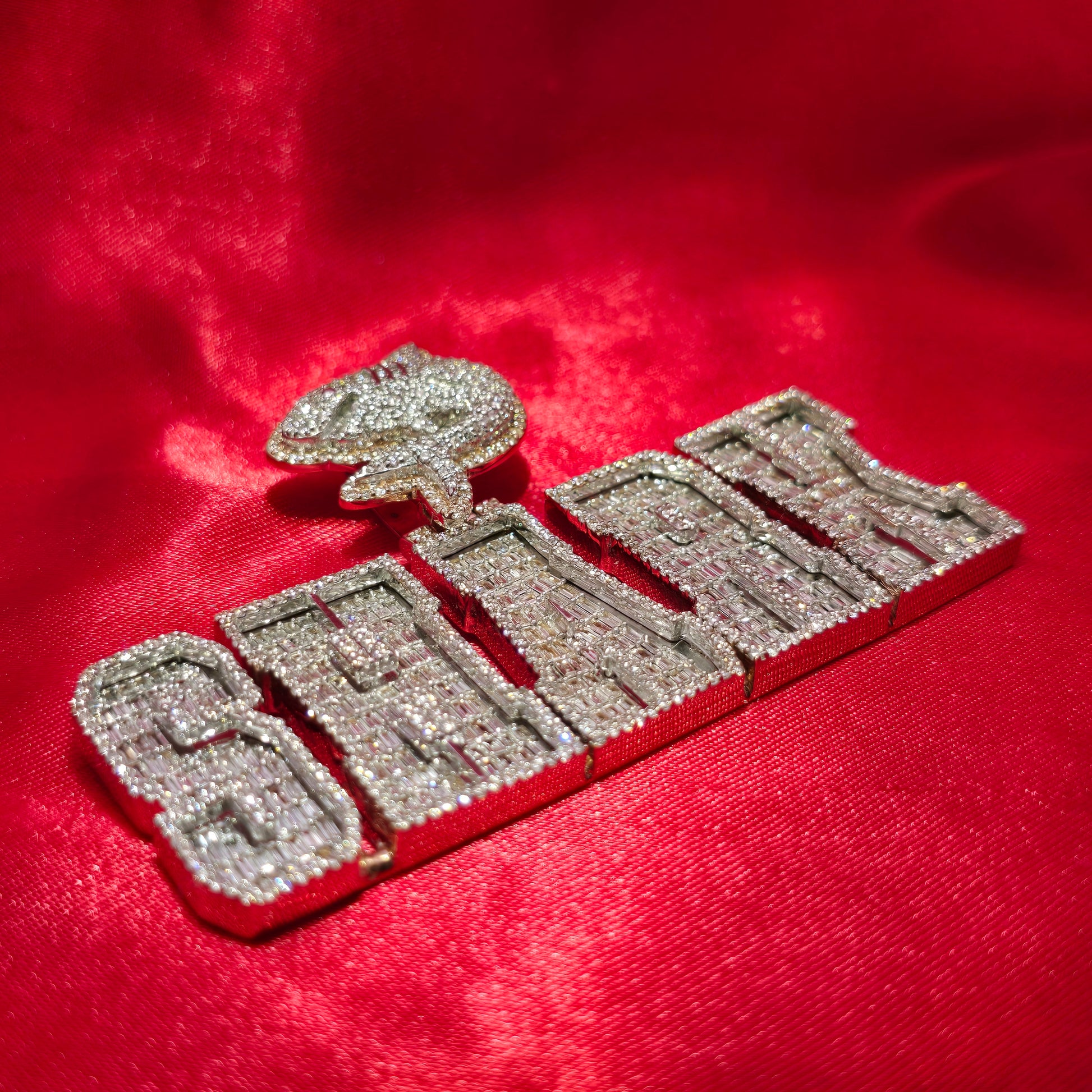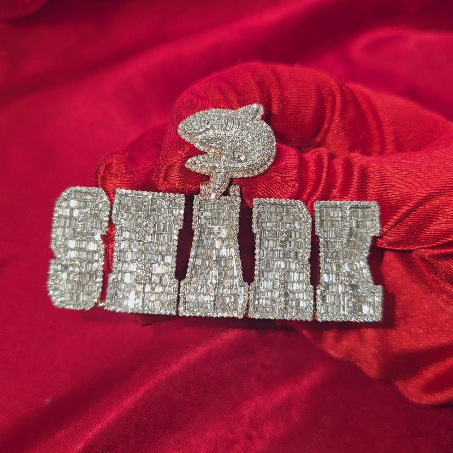 Make a bold statement with our SHARK Custom Pendant, designed for those who want their jewelry to be as unique as their personality. This fully customizable pendant lets you choose any name or word to be featured in a striking shark-inspired design. Perfect for hip hop fashion lovers, ocean enthusiasts, or anyone who wants to stand out with a one-of-a-kind piece.